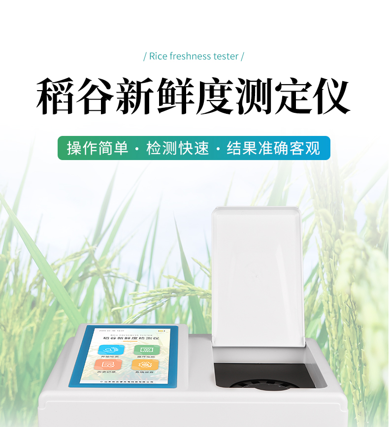 稻谷新鮮度測定儀適用于LS/T 6118—2017《糧油檢驗稻谷新鮮度測定與判別》糧食行業(yè)標準,是檢測稻谷新鮮程度的一款專用儀器。其工作原理是依據(jù)稻谷樣品在陳化過程中產(chǎn)生的醛酮類物質(zhì)的量,將待測稻谷碾制成大米,大米試樣加入專用試劑——測鮮劑后,振蕩混合并進行離心處理,通過檢測樣品與測鮮劑混合反應(yīng)后混合溶液的顏色變化,經(jīng)儀器檢測后顯示樣品的新鮮度值來判斷該稻谷樣品的新鮮程度。該儀器主要應(yīng)用于糧庫、大米加工企業(yè)、糧食質(zhì)檢中心等對稻谷新鮮程度的評價。