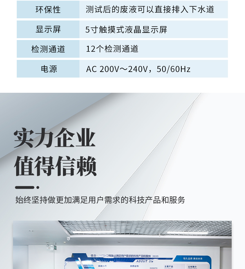13、具有環(huán)保性,測試后的廢液可以直接排入下水道。